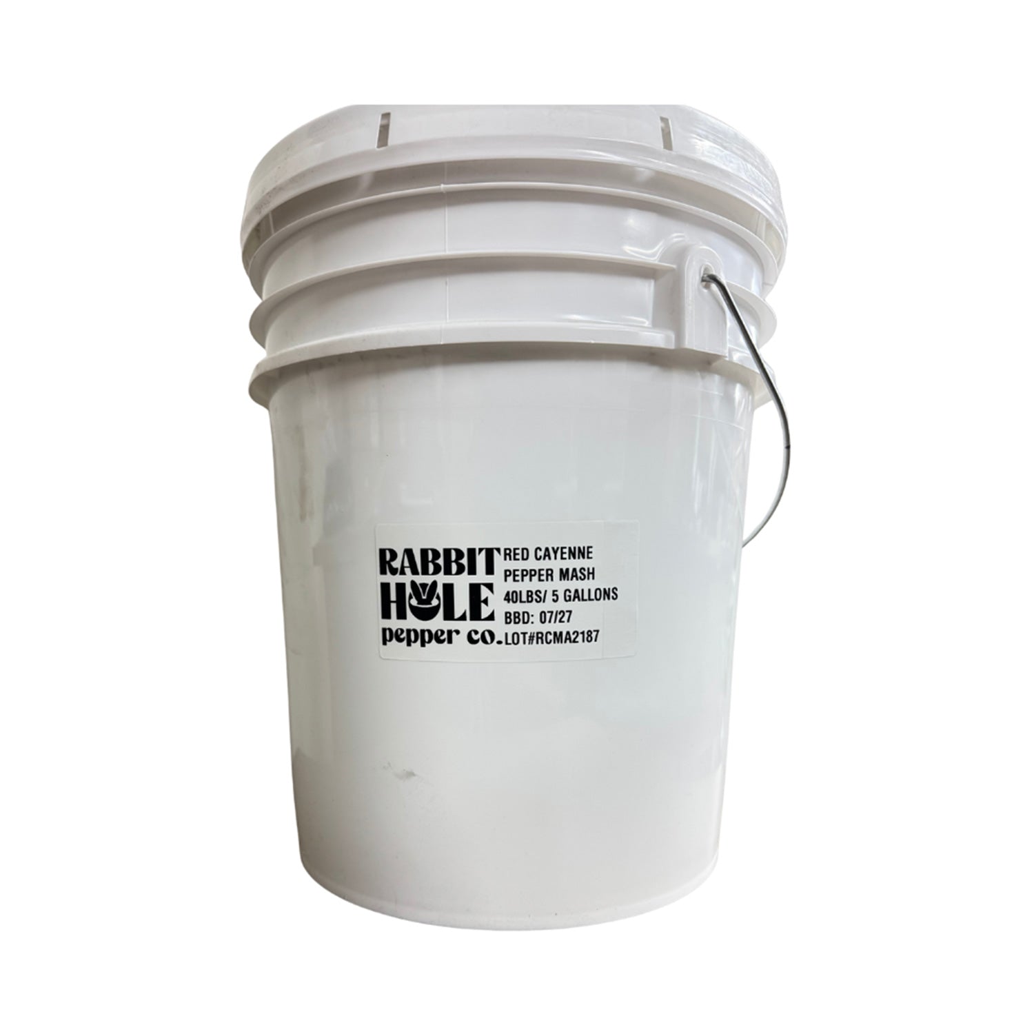 Our bulk Red Cayenne Mash is available in 1 gallon and 5 gallon pails.