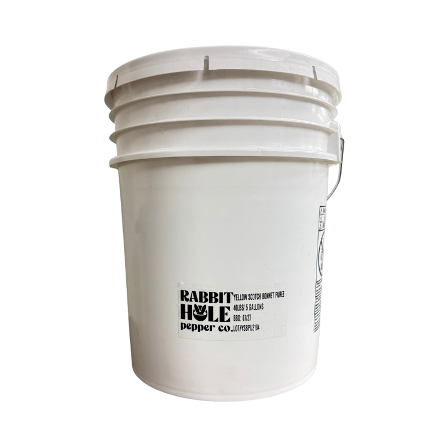 Our bulk Yellow Scotch Bonnet Mash is available in 1 gallon and 5 gallon pails.
